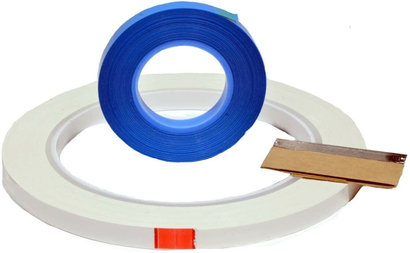 This kit for 1/4" open reel tape is really nice, since it doesn't sacrifice quality whatsoever, yet is an outstanding value. The kit comes with one 82 foot roll of blue TME® Professional splicing tape, one 250 Foot roll of the archival quality solid white leader tape, the same leader used by a majority of leading archives in the USA, and one .009" thick media safety edge editing blade for your convenience. Note: The leader tape in this kit is the very same leader tape as our popular models AC1LWH1000R-A and AC1LWH500R, except is cut to a shorter length, 250 FT.